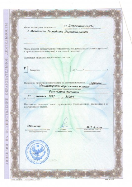 Адрес местонахождения образовательной организации* 367000, г. Махачкала, ул.Дзержинского, д. 21а