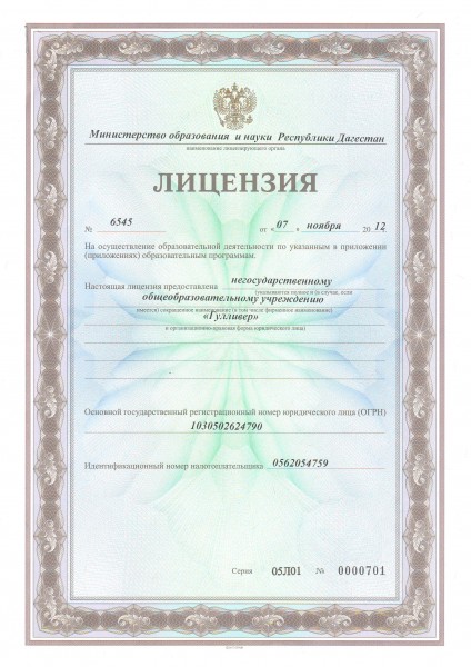 Полное наименование образовательной организации* Негосударственное общеобразовательное учреждение "Гулливер"
